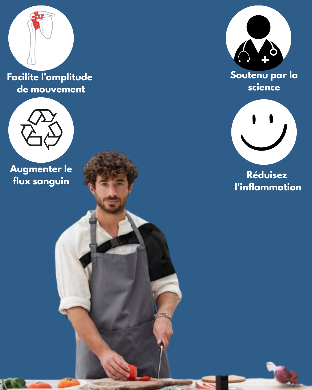Stabilia™ è progettato per alleviare i dolori comuni alla spalla , come quelli causati da tendinite, capsulite, infiammazione o sensazione di instabilità . Offre supporto e comfort, ma non sostituisce il parere medico.